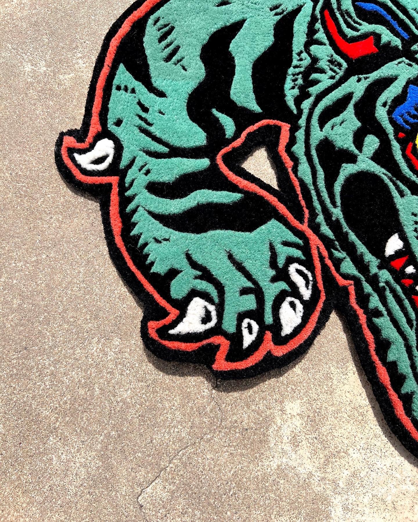 In Collaboration with Barthdayworks. Handtufted Rug, 100% New Zealand/Aussie Wool. Dyed in AZO free dyes.Hand Embossed. All Sales Final. Dispatched within 3 – 5 weeks but it depends on where you live.